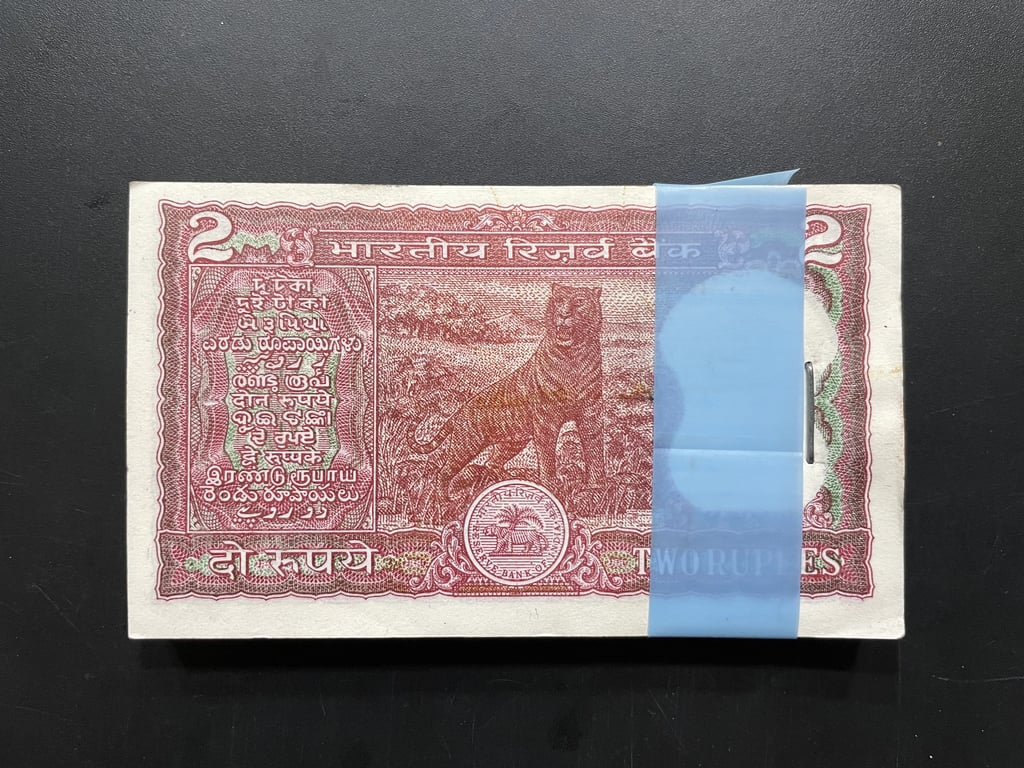 India, Rupees 2 Complete Serial Bundle of 100 Notes