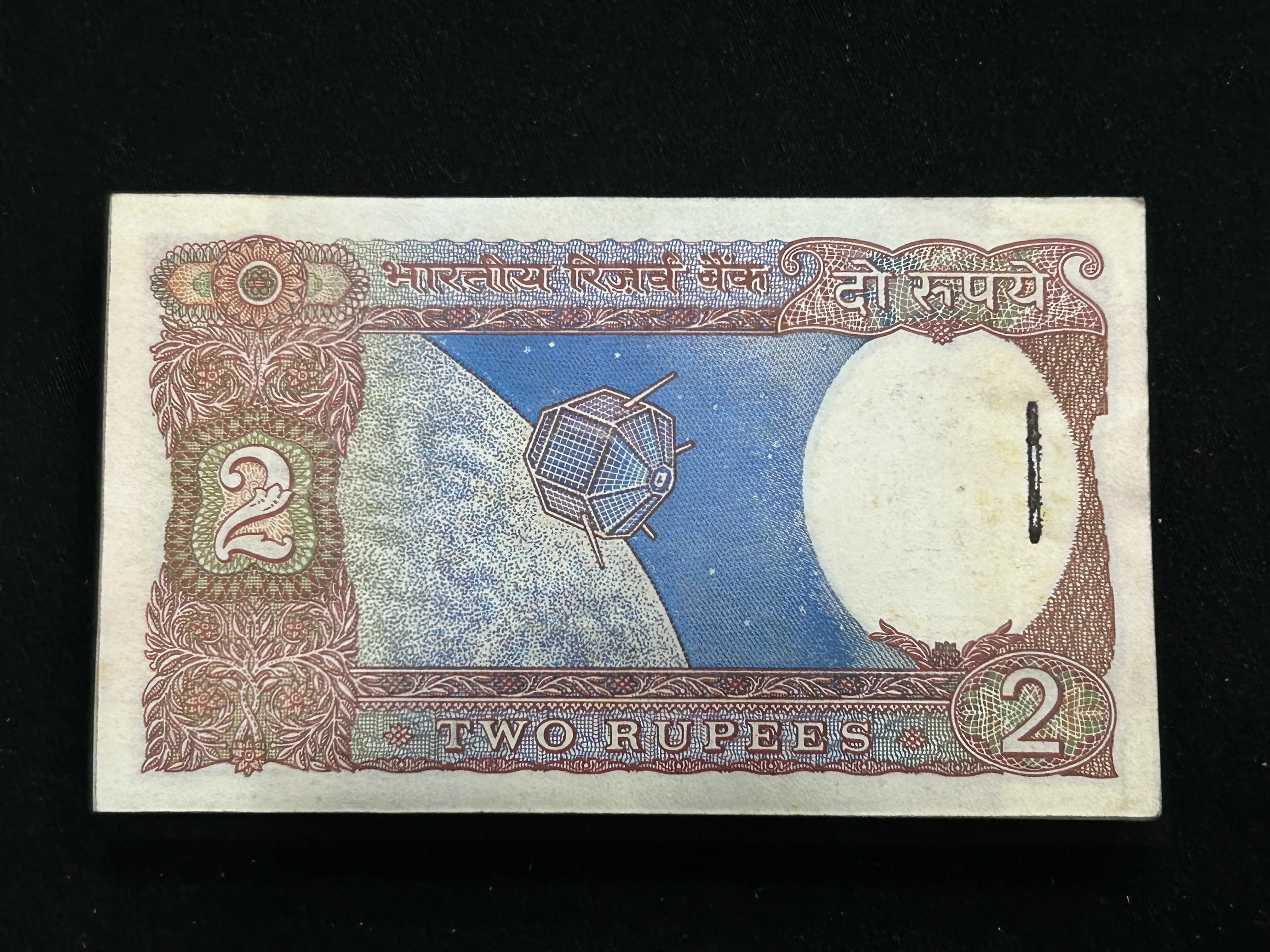 India, Rupees 2 Complete Serial Bundle of 100 Notes, Fancy Mirror Serial Number 519 - 915, Fancy Serial Number 916 (Hallmark), Sattelite Issue, Sign. R. N. Malhotra, Inset Plain, UNC, (70P 519901).