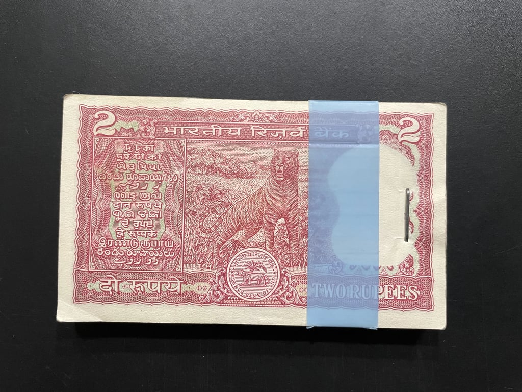 Indian Rupees 2 Complete Serial Bundle of 100 Notes