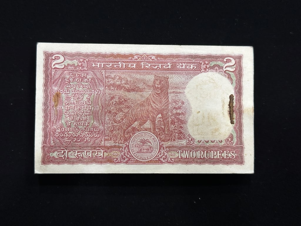 India, Rupees 2 Complete Serial Bundle of 100 Notes, Small Fancy Doubling Serial Number xx21-21 & Fancy Serial Number Ending 108, Standing Tiger Issue, Sign. Manmohan Singh, Inset Plain