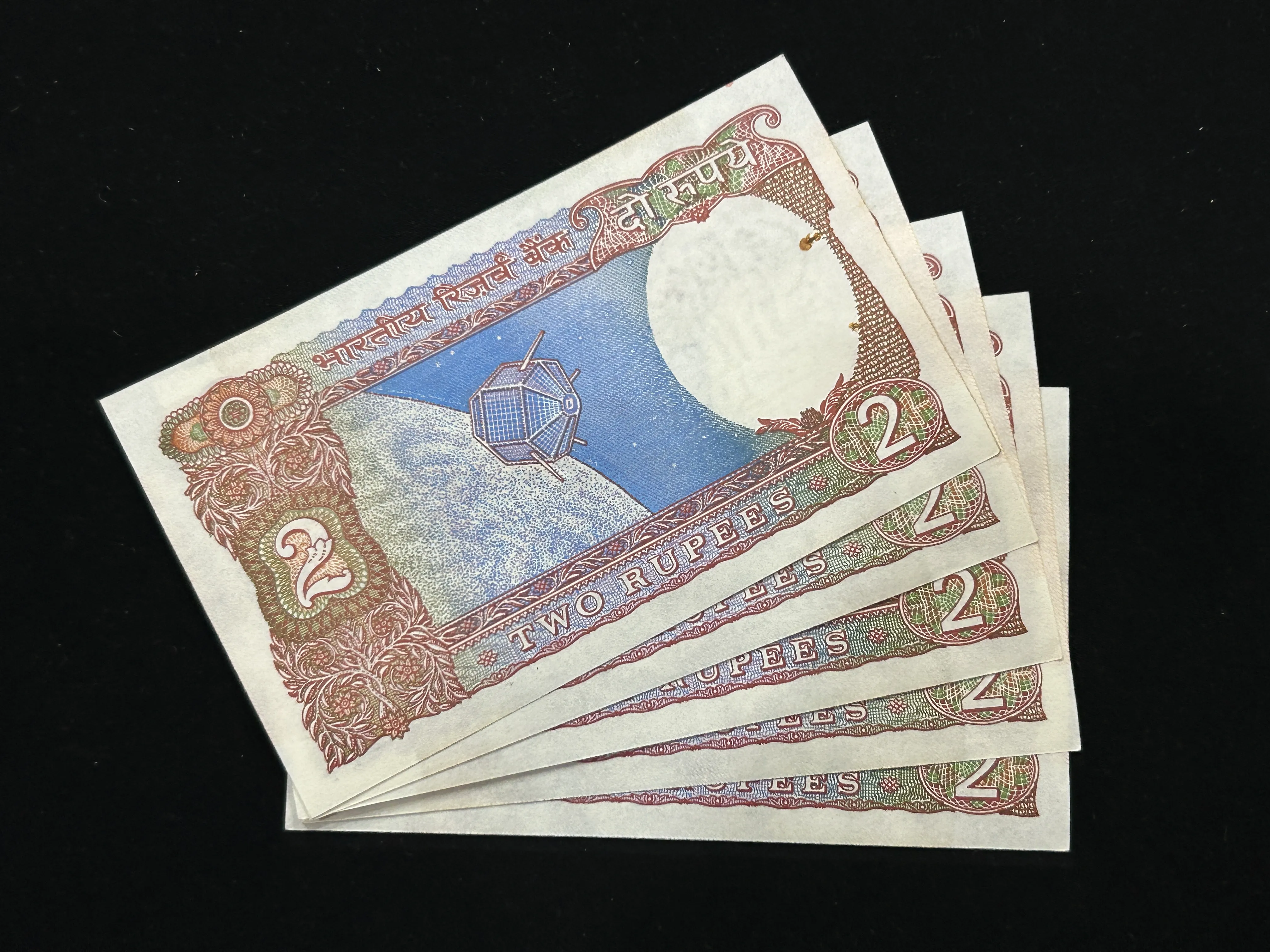 India, Rupees 2 x 5 Consecutive Serial Number Banknotes, Satellite Issue, Sign. Amitabh Ghosh, Inset A, UNC, RARE, (06Q 600736)