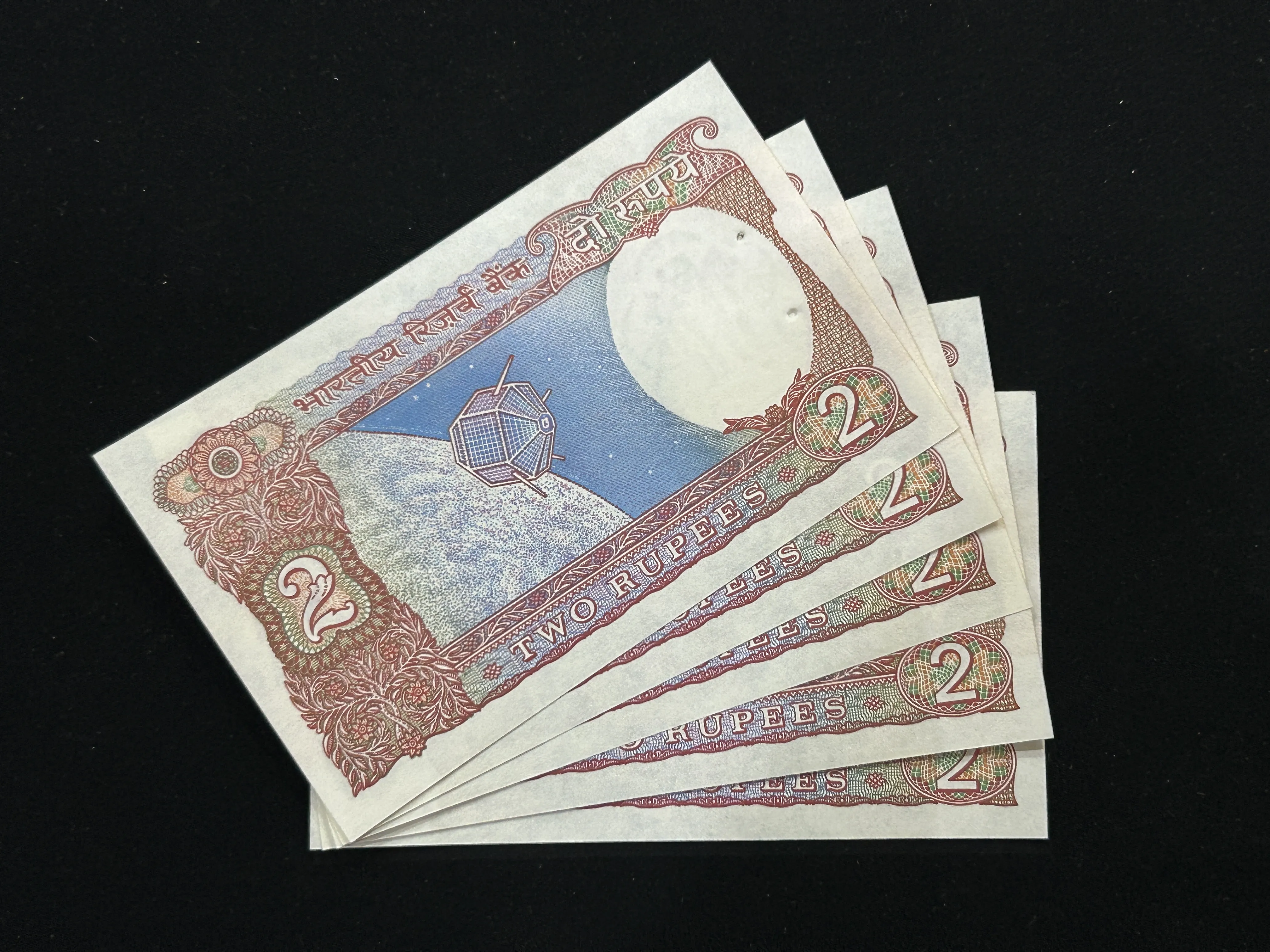 India, Rupees 2 x 5 Consecutive Serial Number Banknotes, Satellite Issue, Sign. Manmohan Singh, Inset A, UNC, RARE, (06L 778631)