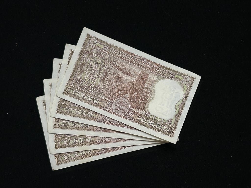 India, Rupees 2 x 5 Consecutive Serial Number Banknotes, Diamond Issue, Sign. L.K. Jha, UNC