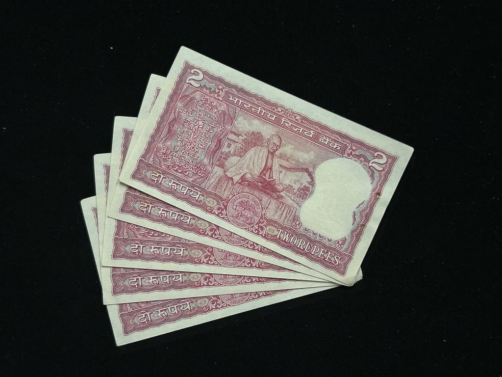 India, Rupees 2 x 5 Consecutive Serial Number Banknotes, Gandhi Issue, Sign. L.K. Jha, UNC