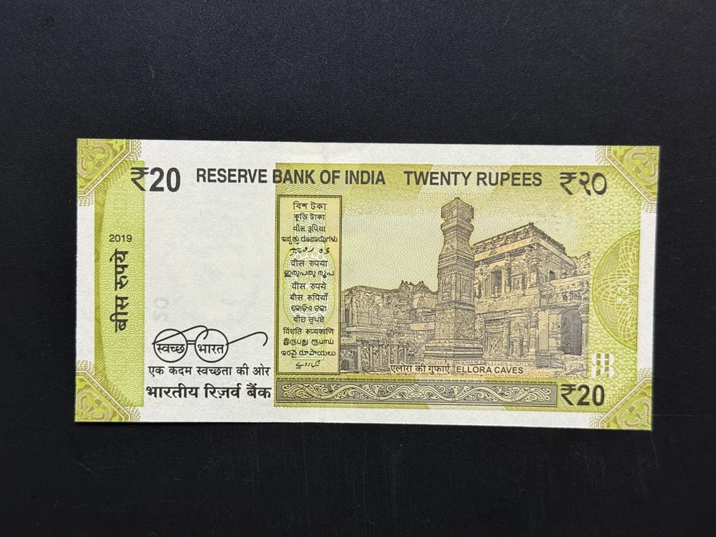 India, Rupees 20 Banknote, Serial Number Shifting Upwards Error, Sign. Shaktikanta Das, UNC