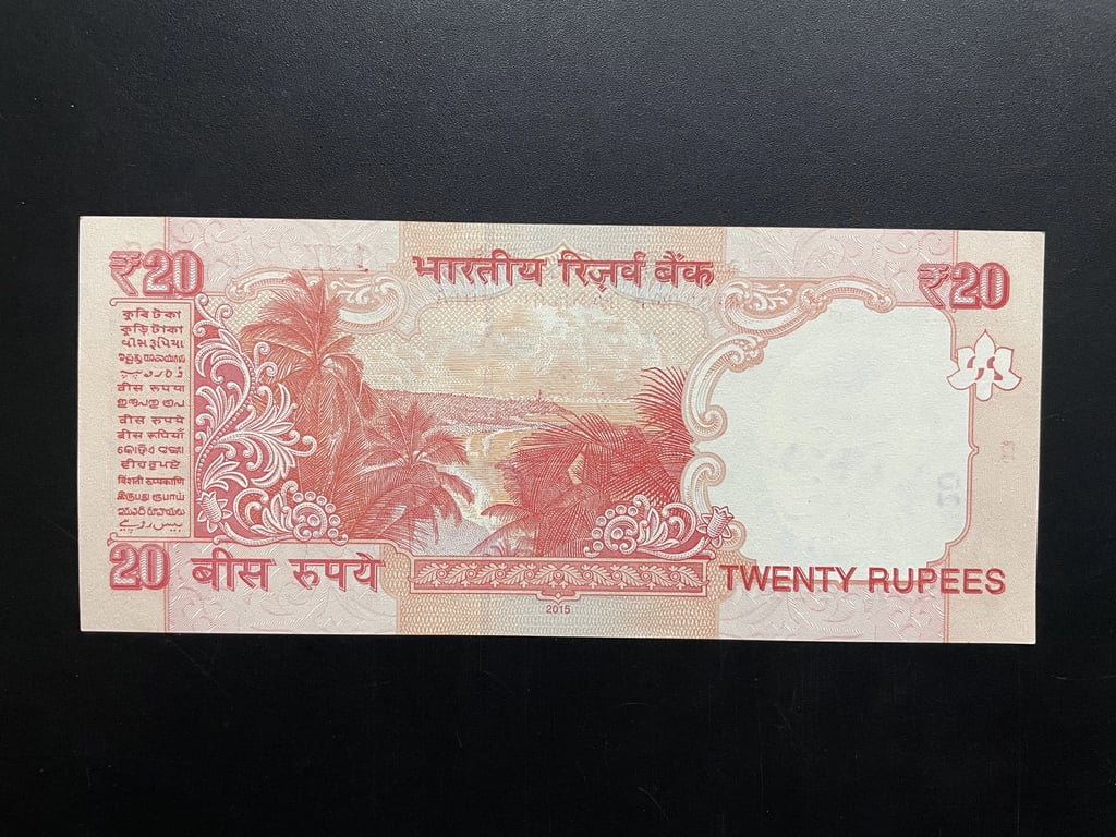 Indian Rupees 20 Serial Number Printing Error Banknote