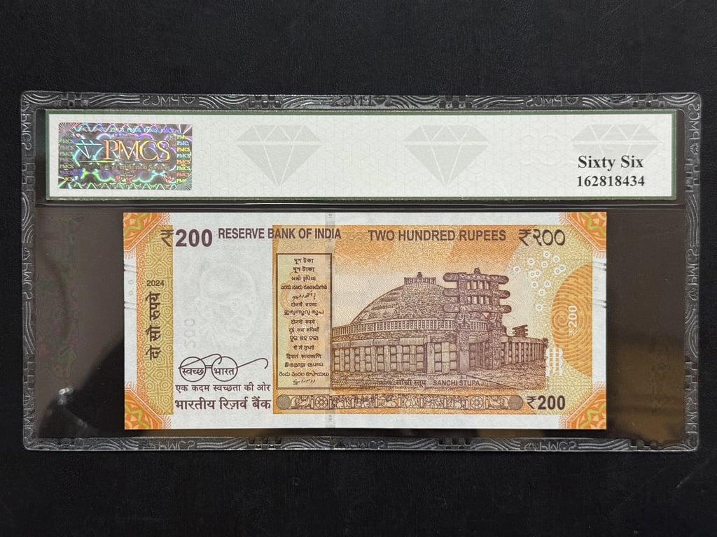 India, Rupees 200 Banknote, Super Solid Fancy Serial Number 3 - 333333, Sign. Shaktikanta Das, PMCS Graded 66 (Gem UNC) Top Grade