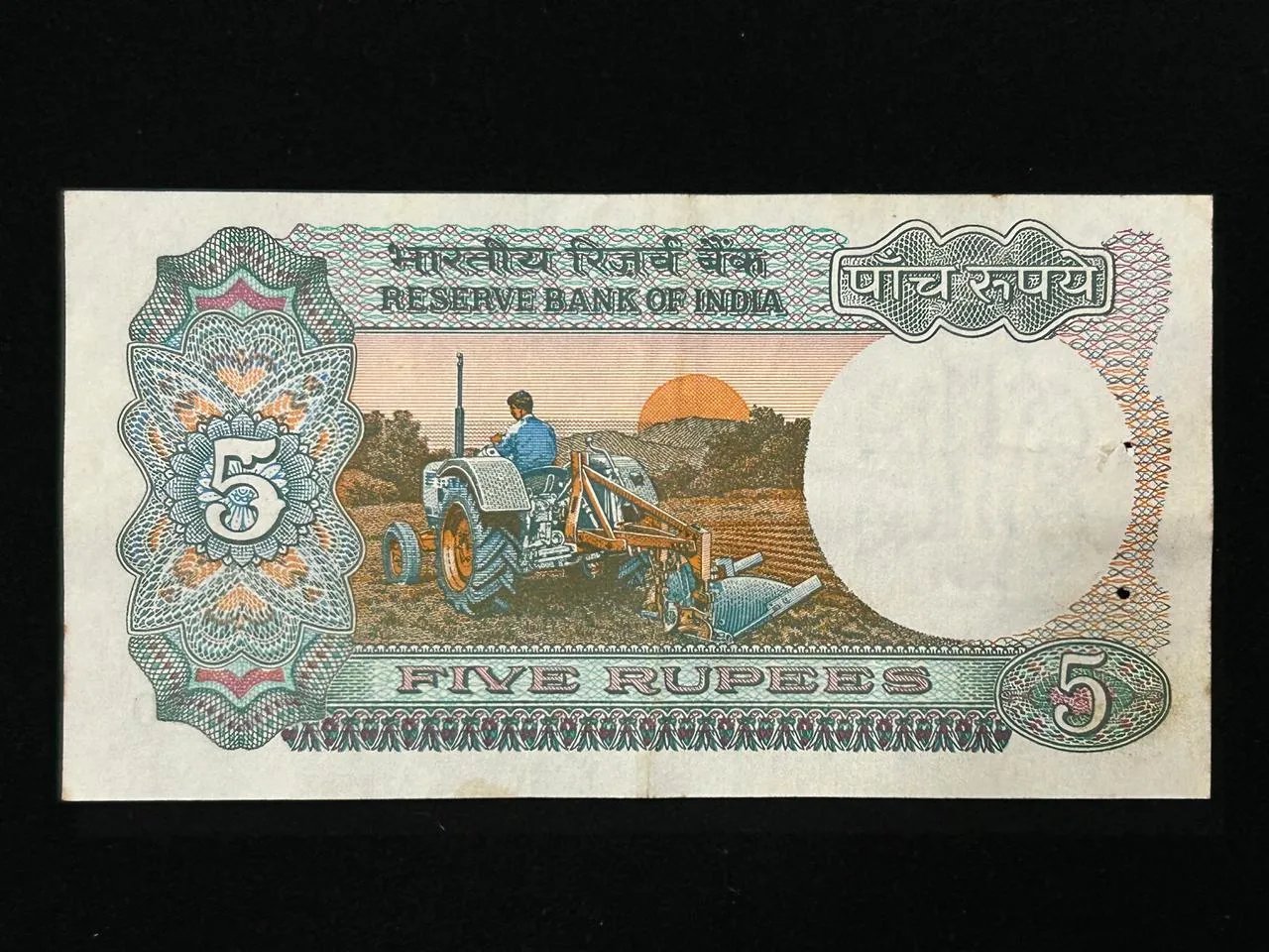 India, Rupees 5 Banknote, Tractor Issue, Sign. Amitabh Ghosh, Inset D, RARE, (34T 989630)