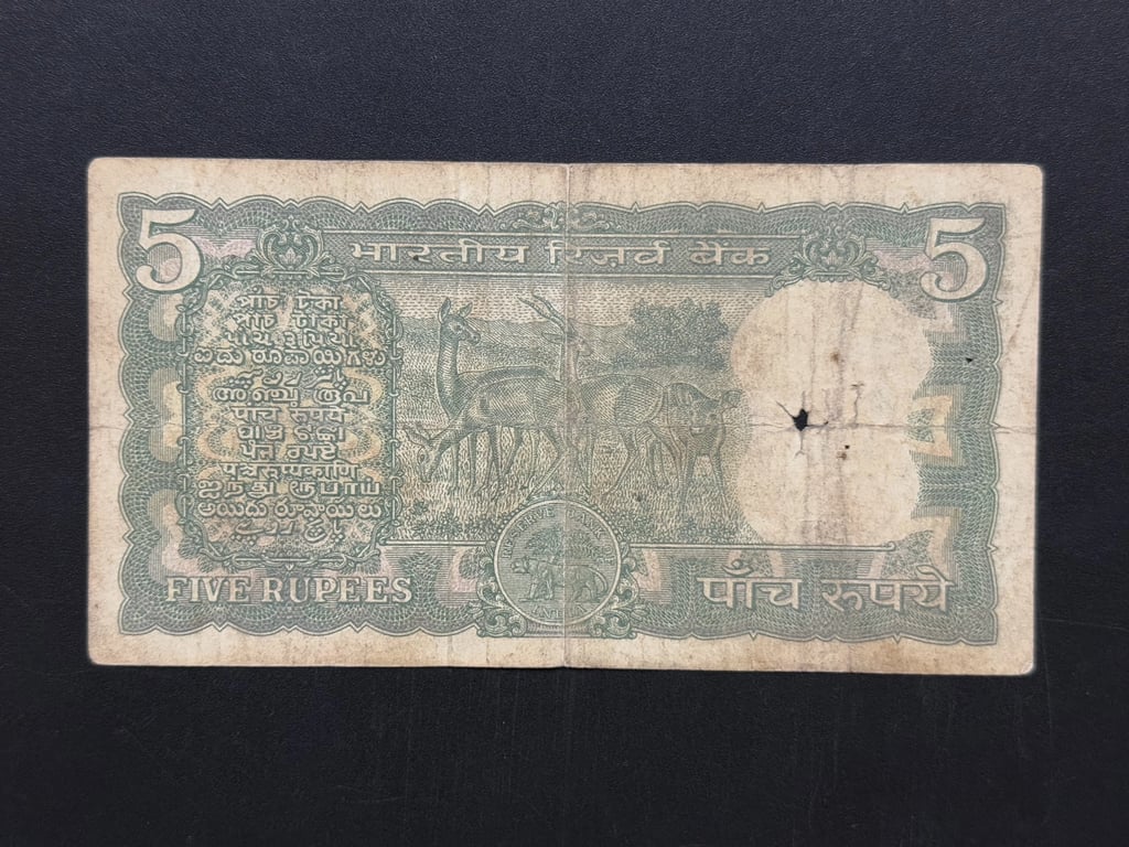 India, Rupees 5 Banknotes, 4 Deer Issue, Sign. S. Jagannathan, Correct Urdu, Used Condition