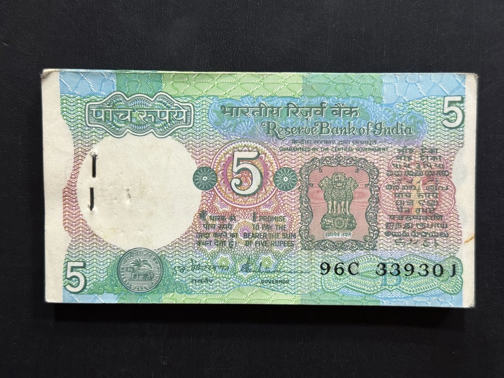 India, Rupees 5 Complete Serial Bundle of 100 Notes, Fancy Doubling Serial Number 339-339 & 339333, Tractor Issue, Sign. S. Venkitramanan