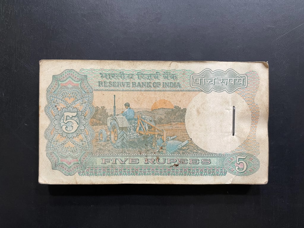 Indian Rupees 5 Complete Serial Bundle of 100 Notes
