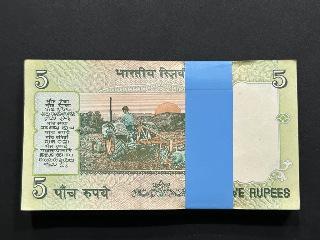 India, Rupees 5 Complete Serial Bundle of 100 Notes, Holy Fancy Serial Number Ending 687 (Reverse 786), Fancy Mirror Serial Number 956-659, Fancy Serial Number Ending 666, Gandhi Series, Sign. Y.V. Reddy, Inset E