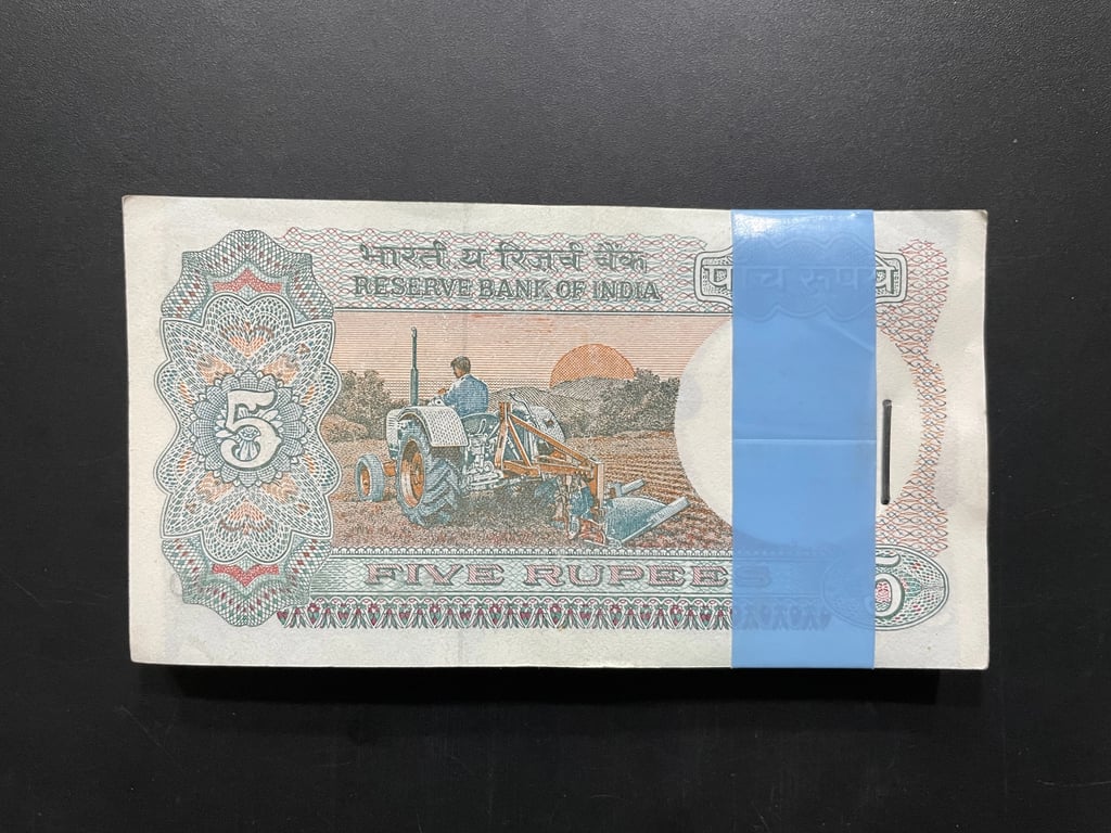 India, Rupees 5 Complete Serial Bundle of 100 Notes