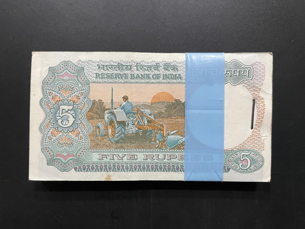 India, Rupees 5 Complete Serial Bundle of 100 Notes