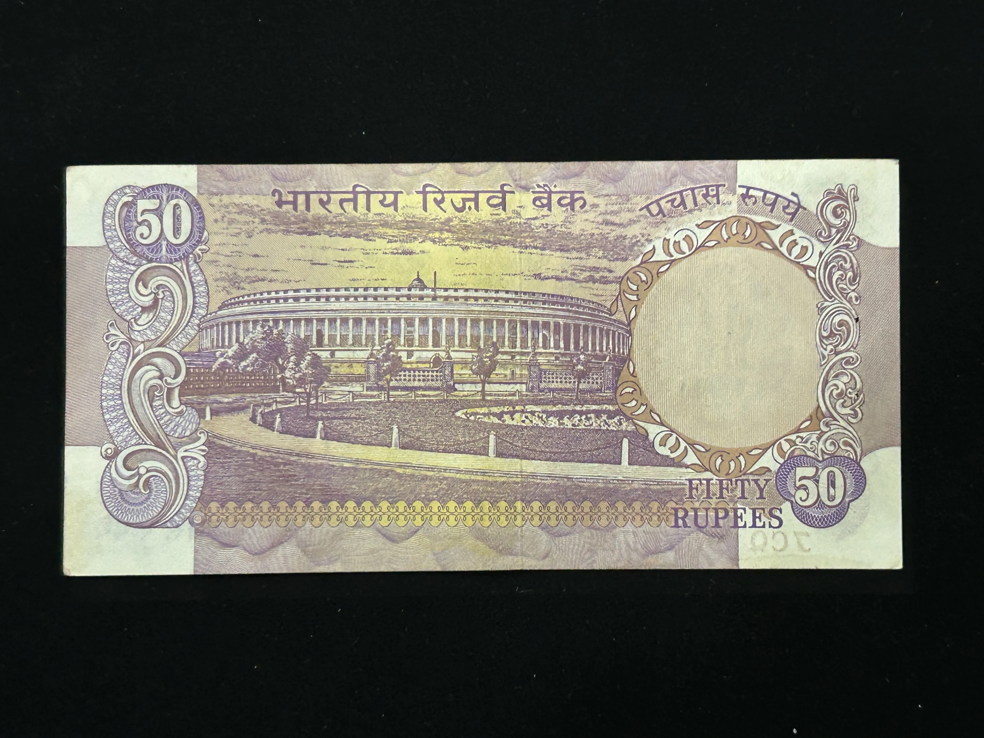 India, Rupees 50 Banknote, 4th Issue, Parliament Issue (Without Flag Issue), Sign. I.G. Patel, AUNC, (7CQ 987572)