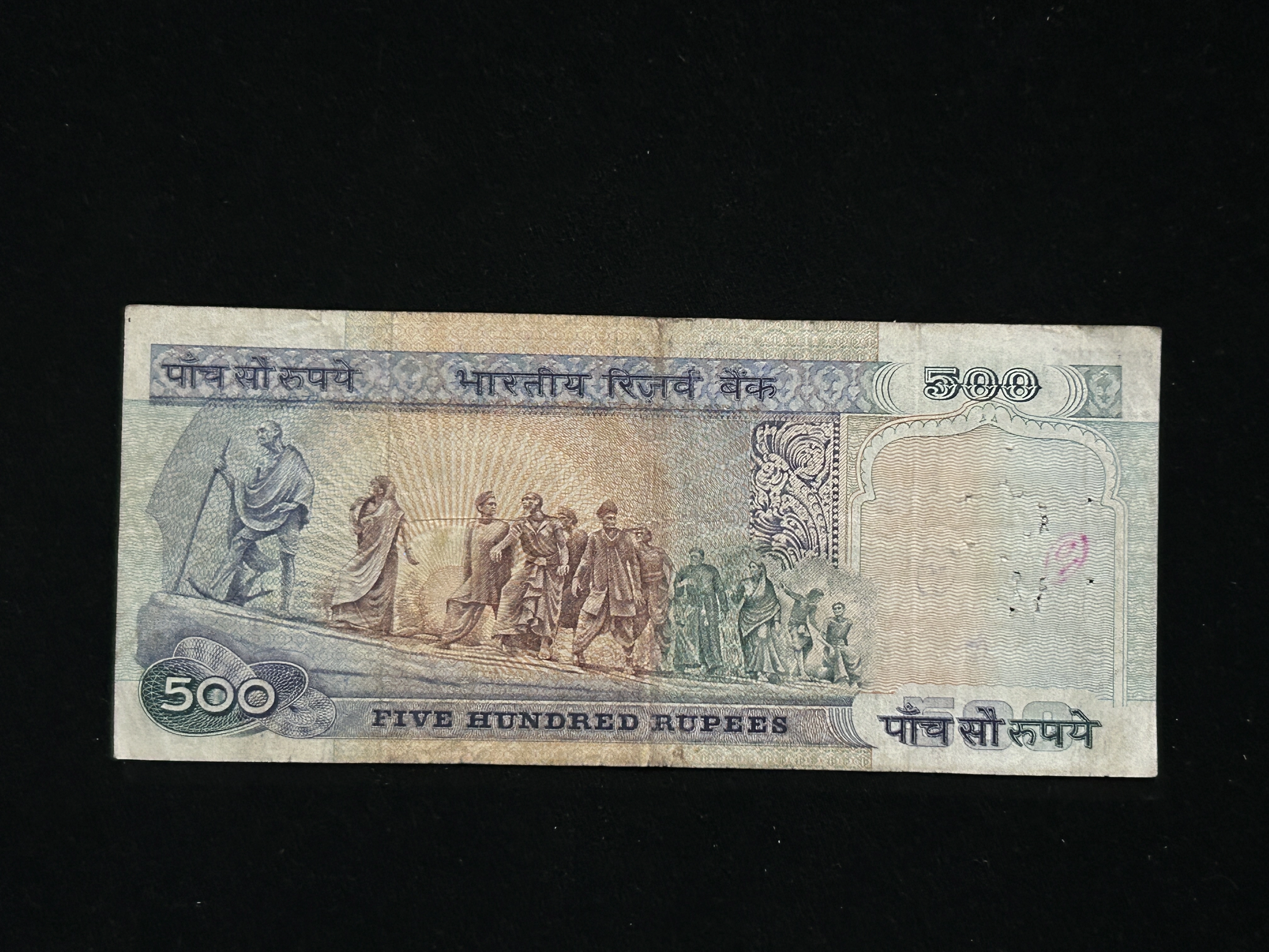 India, Rupees 500 Banknote, Holy Fancy Serial Number Starting 214 (RAM), 3rd Issue, Sign. C. Rangarajan, Used Condition