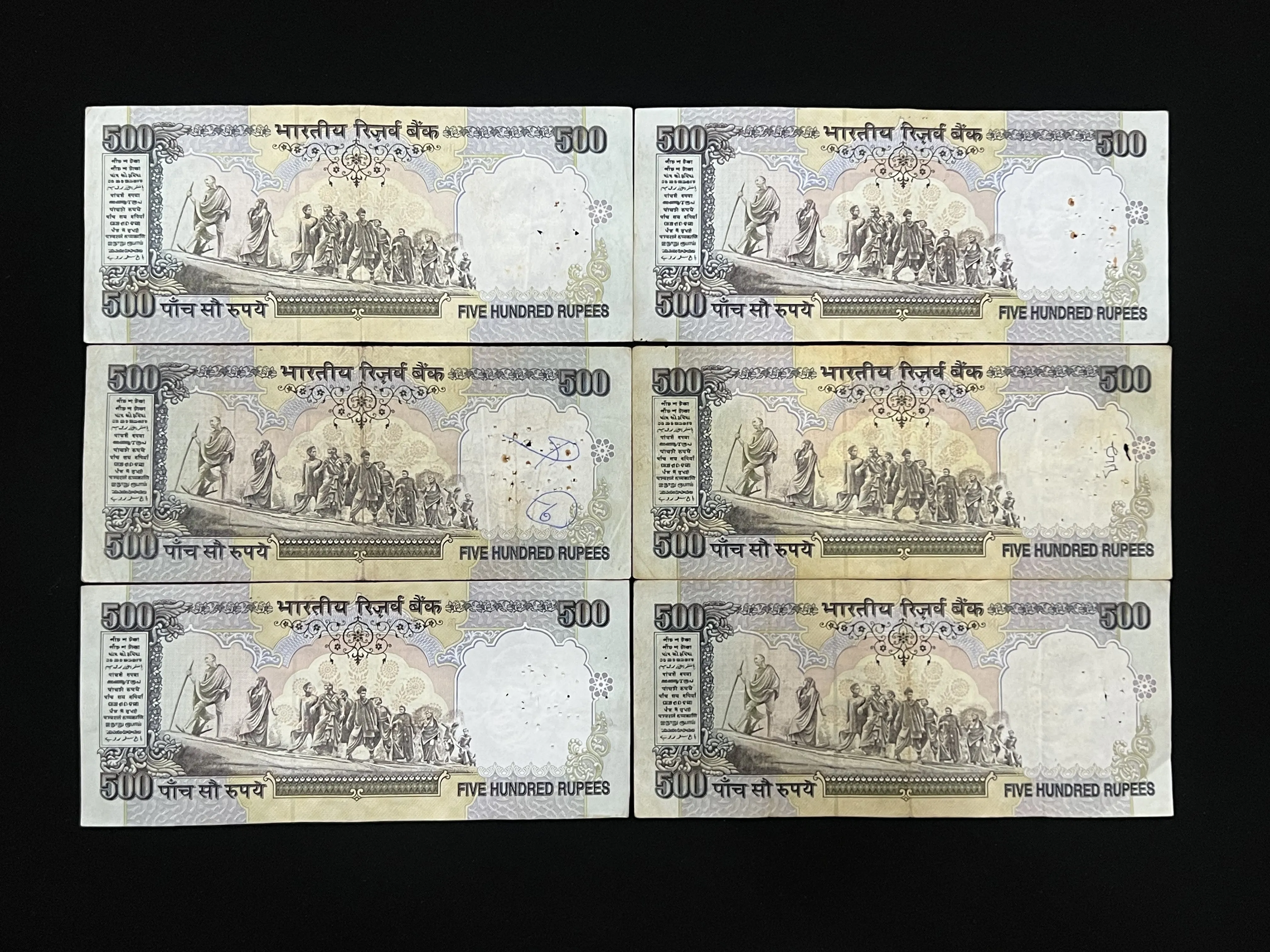 India, Rupees 500 x 6 Banknotes, Second Series (Blue) Issue, Sign. Bimal Jalan, Inset Plain, (2HQ 736779)