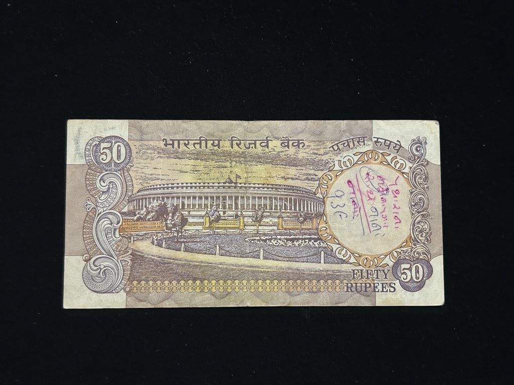 India, Rupees 50 Banknote, Solid Fancy Serial Number 111111, Sign. R.N. Malhotra, Inset A, Used Condition