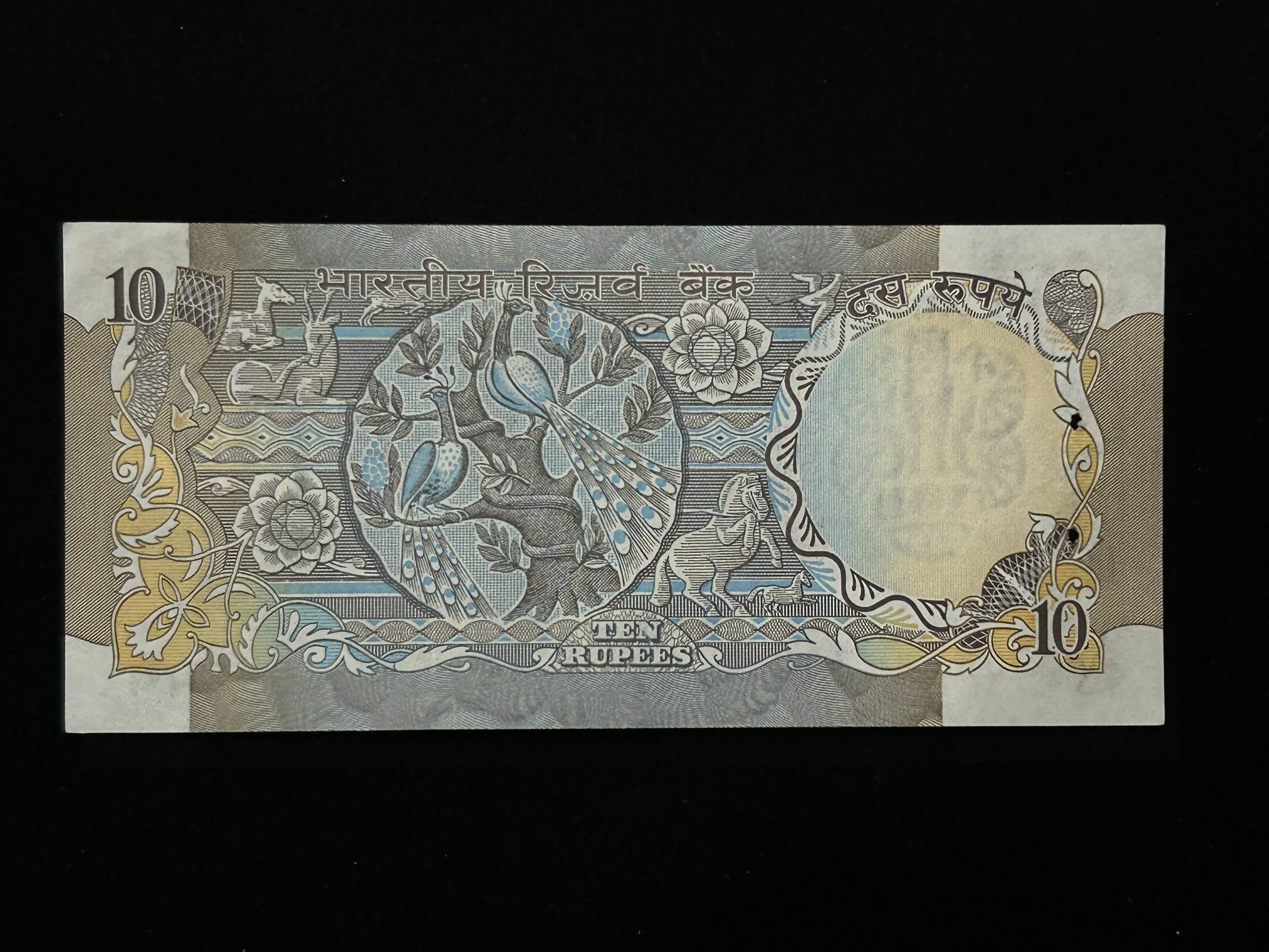 India, Rupees 10 Banknote, Peacock Issue, Sign. R.N. Malhotra, Inset C, UNC, (90K 443602)