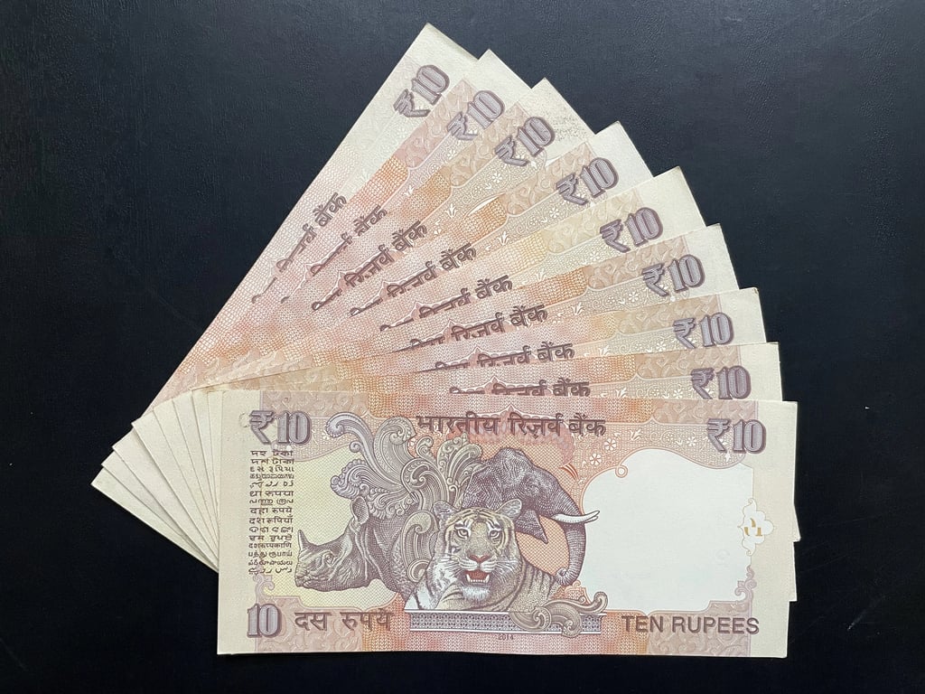 Indian Set of Rupees 10 Banknotes 001000 - 009000