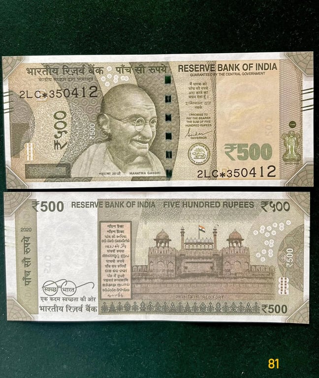 IS 81 - Rs 500 India Banknote Star Replacement Issue 2LC INSET E 2020 Limited Issue