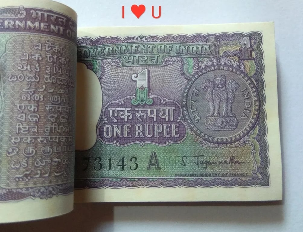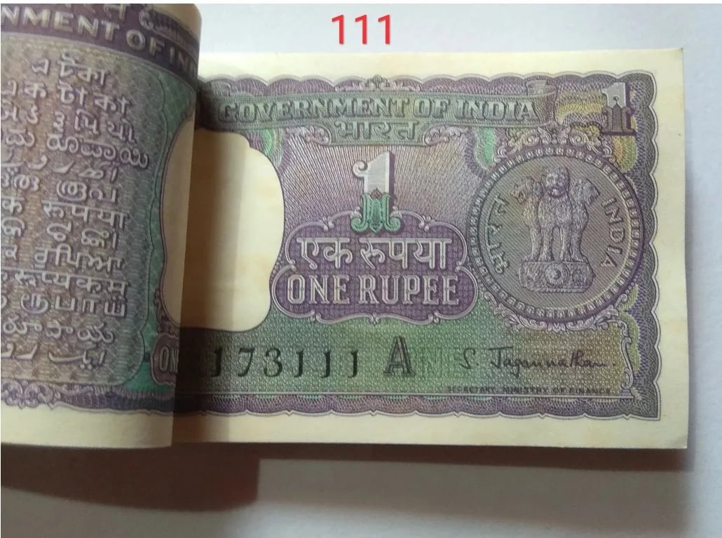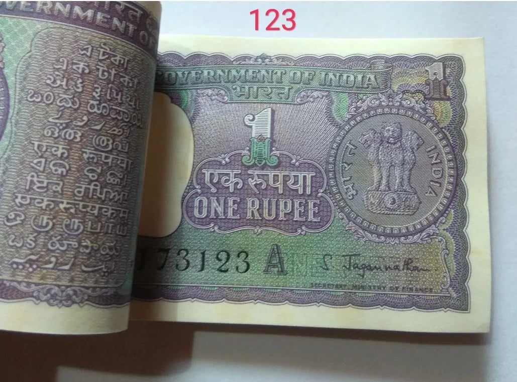 RARE 1 RUPEE FULL SERIAL PACKET WITH MANY SEMI-FANCY NUMBER 1967 SIGNED BY S. JAGANNATHAN