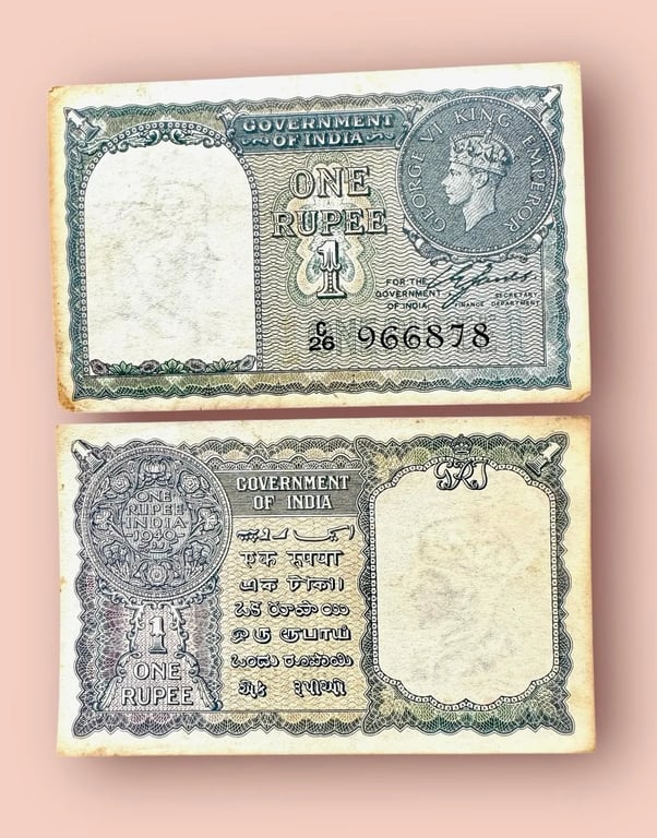 Re 1 British India Banknote 1940 Series Black Series King George VI Collectible Quality 966878 Burma Issue Unique and Rare Issue