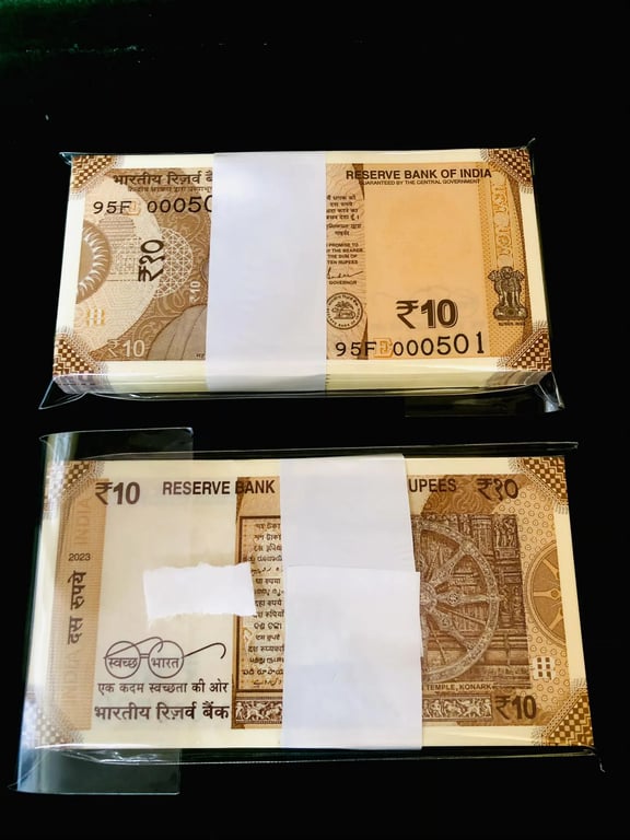 Rs 10 India Banknote Low Serial 000501 To 000600 Serial Packet Gem Unc E 2023 Issue Unique And Rare