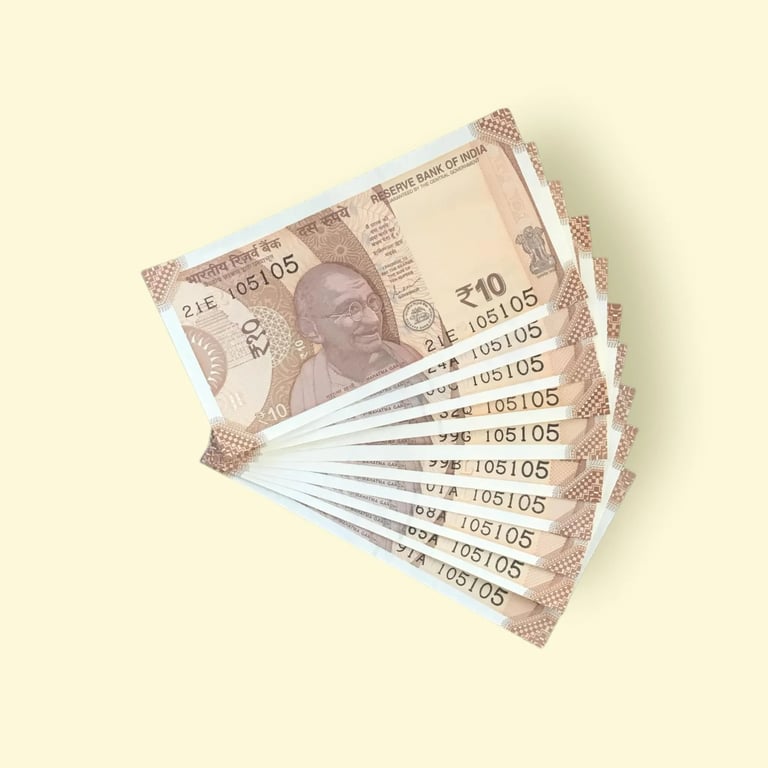 RS 10 INDIA BANKNOTES SEMIFANCY 10 NOTES SAME NUMBER SETS 105105 UNIQUE AND RARE