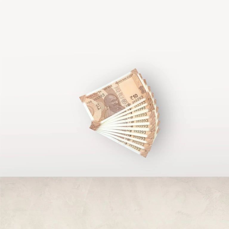 RS 10/- INDIA BANK NOTE SEMI FANCY 10 NOTE SAME NUMBER SET 393393 UNIQUE AND RARE
