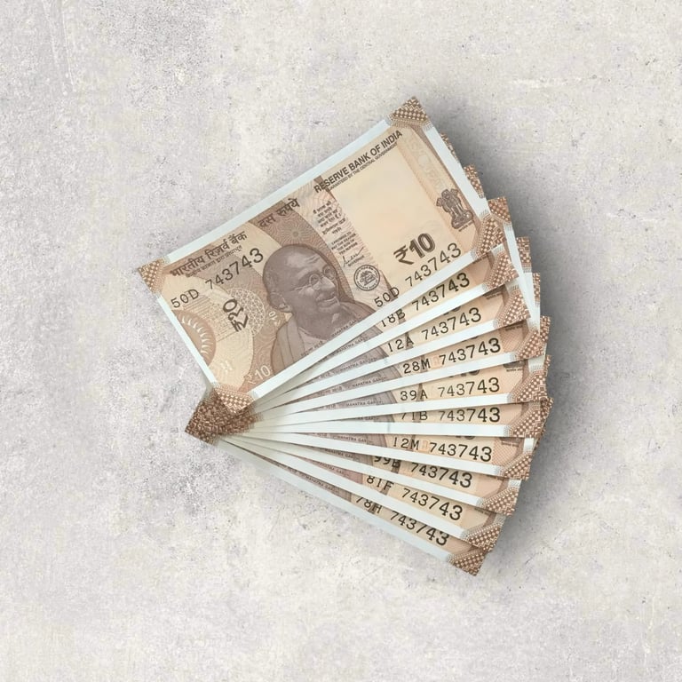 RS 10 INDIA BANKNOTES SEMIFANCY 10 NOTES SAME NUMBER SETS 743743 UNIQUE AND RARE