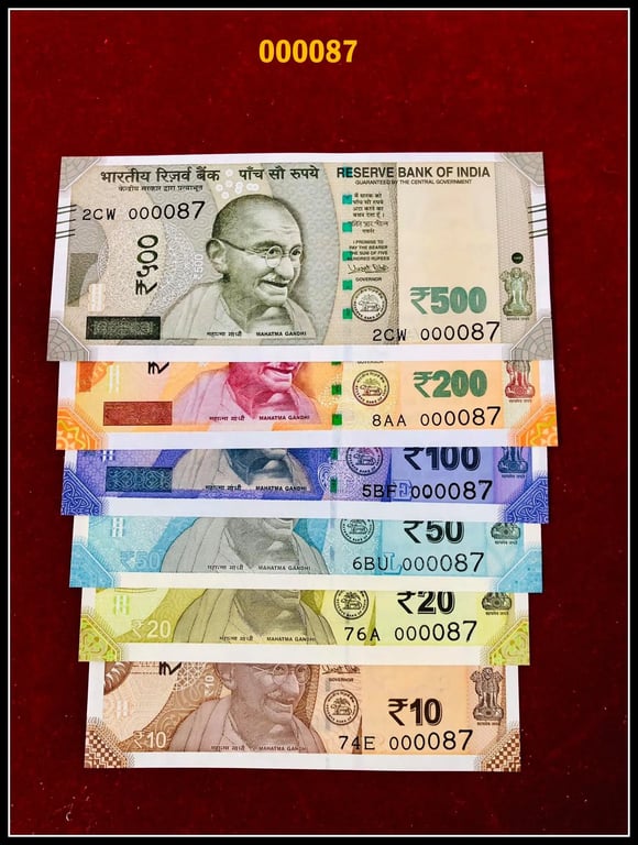 Rs 10 to 500 INDIA Banknote Solid Fancy Set 000087 Gem Unc Unique Collection rare Latest Issue