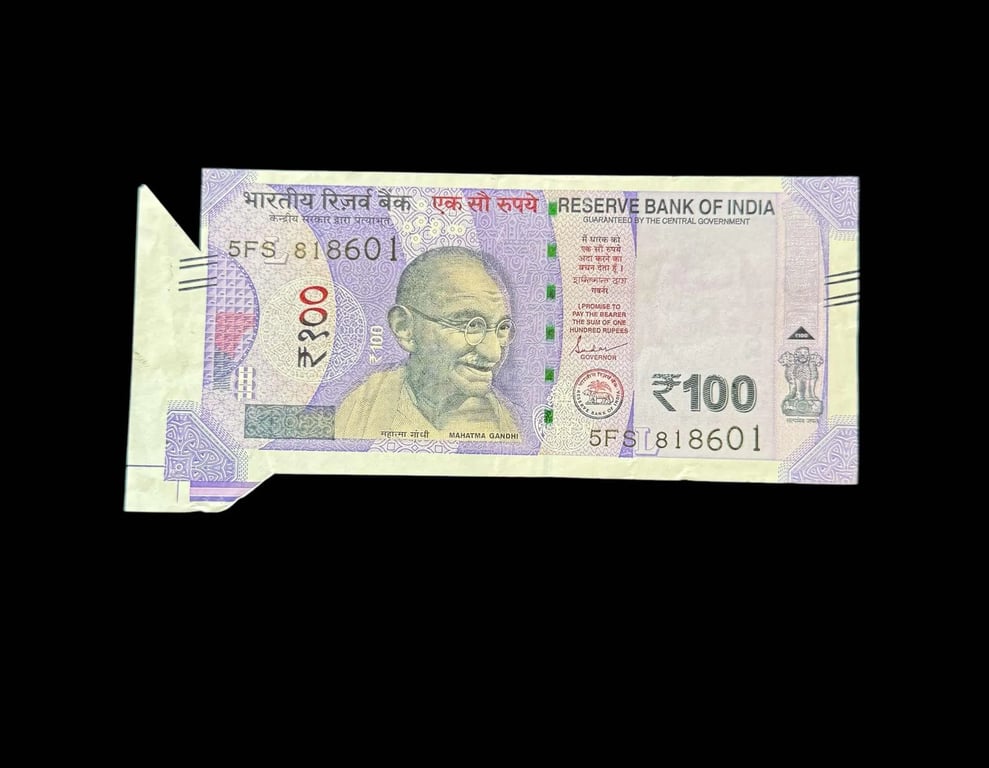 RS 100 INDIA BANKNOTE EXTRA PAPER CUT FOLD ERROR Gem Unc Very Unique and Rare