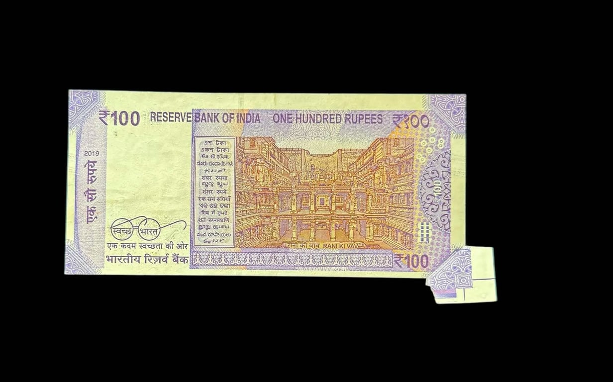 RS 100 INDIA BANKNOTE EXTRA PAPER CUT FOLD SHEET ERROR Gem Unc Very Unique and Rare