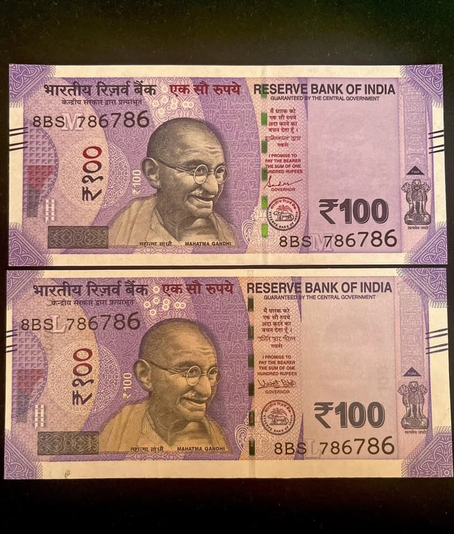 Rs 100 INDIA Banknote HOLY Number TWIN SET 8BS 786786