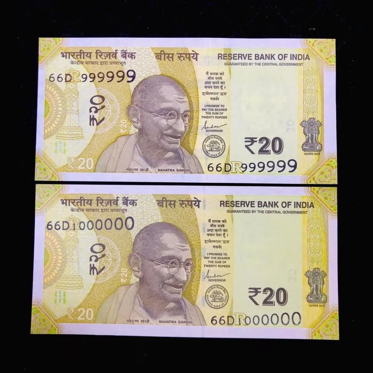 Rs 20 Fancy Number Set 66D 999999 AND 1000000 Gem Unc Rare and Unique