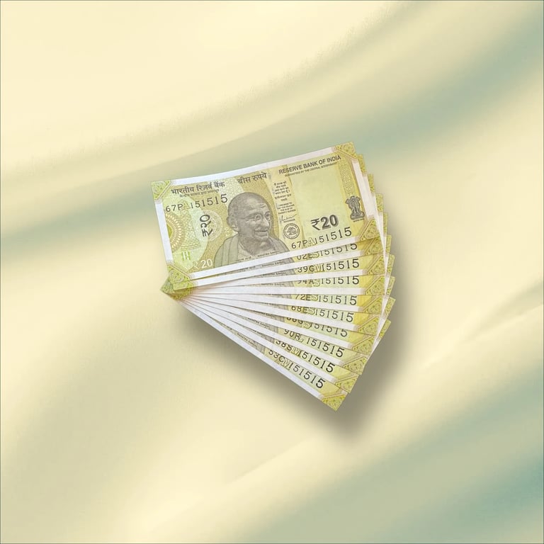 Rs 20/- INDIA Bank note Tripling NO 10 Note Set Number 151515 GEM UNC UNIQUE & RARE