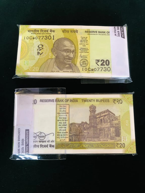 Rs 20 India Banknote Replacement Issue or Star Issue 99D Inset S Serial Bundle GEM UNC 2022