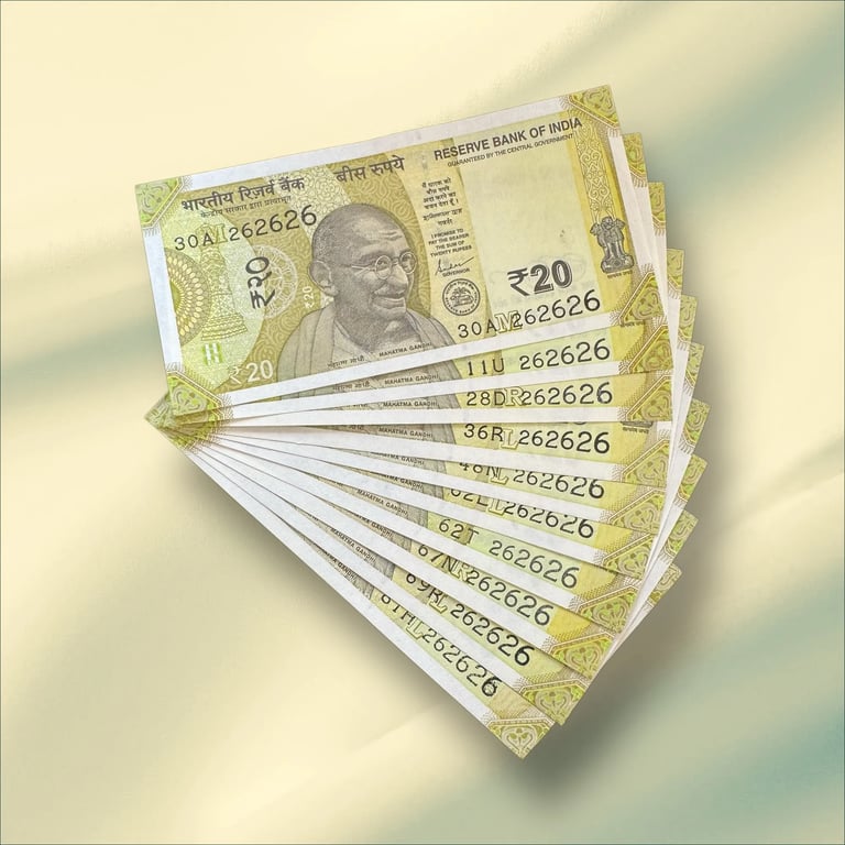 RS 20/- INDIA BANKNOTE same No 10 NOTE SEMI FANCY SET 262626 GEM UNC UNIQUE & RARE