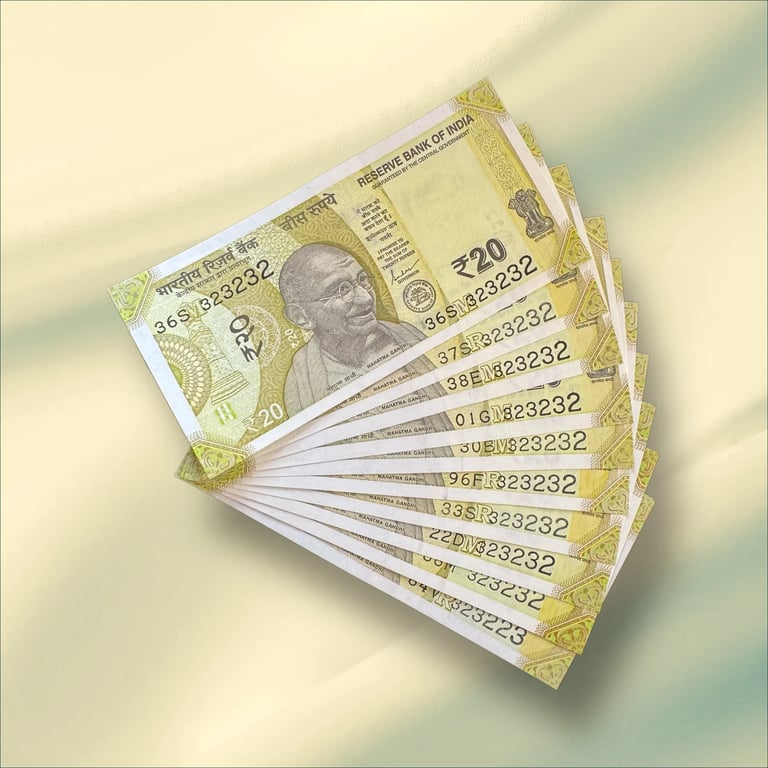 Rs 20/- India Banknote TRIPLING Number *10 Note Set Gem Unc Very Unique and Rare