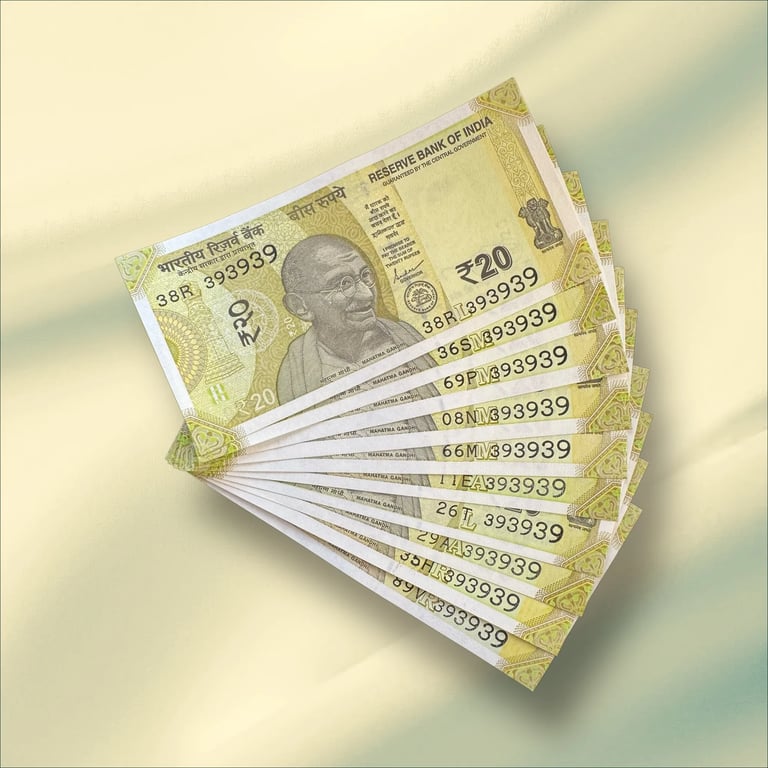 RS 20/- INDIA BANKNOTE same No 10 NOTE SEMI FANCY SET 262626 GEM UNC UNIQUE & RARE