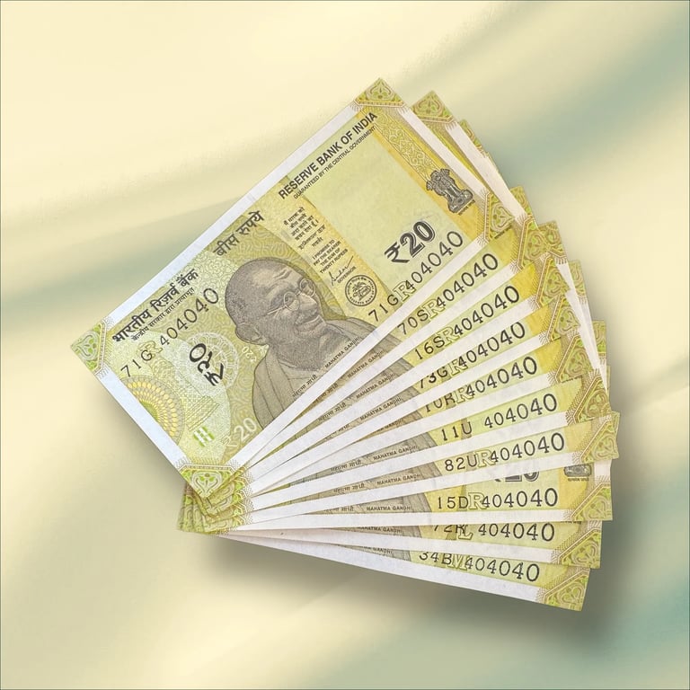 RS 20/- INDIA BANKNOTE same No 10 NOTE SEMI FANCY SET 404040 GEM UNC UNIQUE & RARE