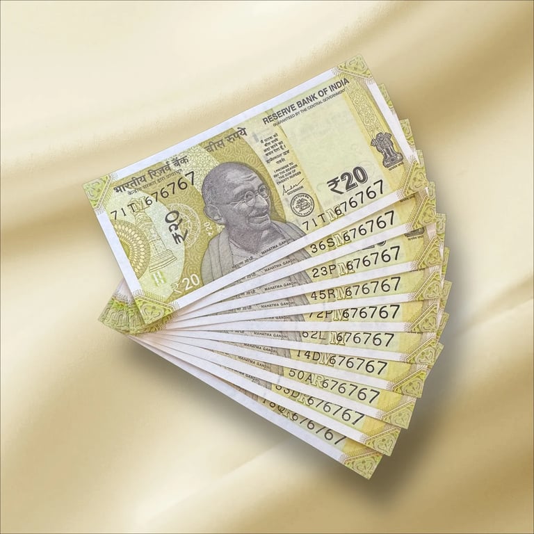 Rs 20/- India Banknote TRIPLING Number *10 Note Set Gem Unc Very Unique and Rare