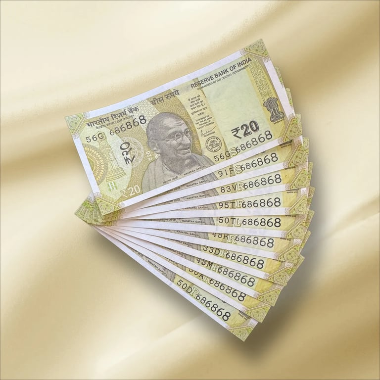 RS 20/- INDIA BANKNOTE same No 10 NOTE SEMI FANCY SET 686868 GEM UNC UNIQUE & RARE