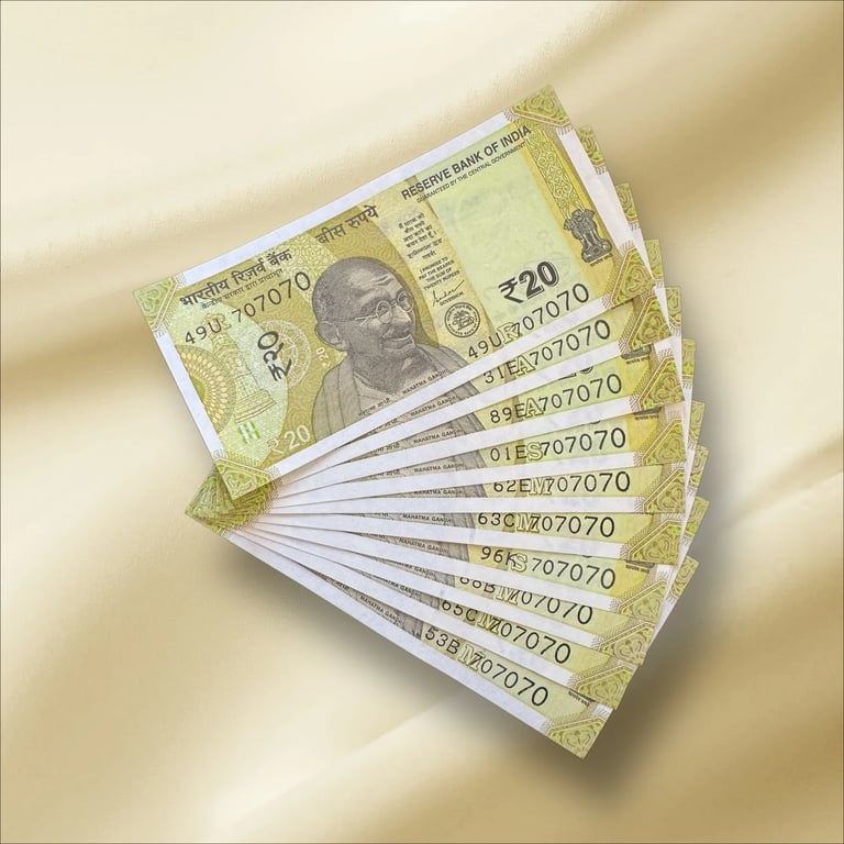 RS 20/- INDIA BANKNOTE same No 10 NOTE SEMI FANCY SET 707070 GEM UNC UNIQUE & RARE