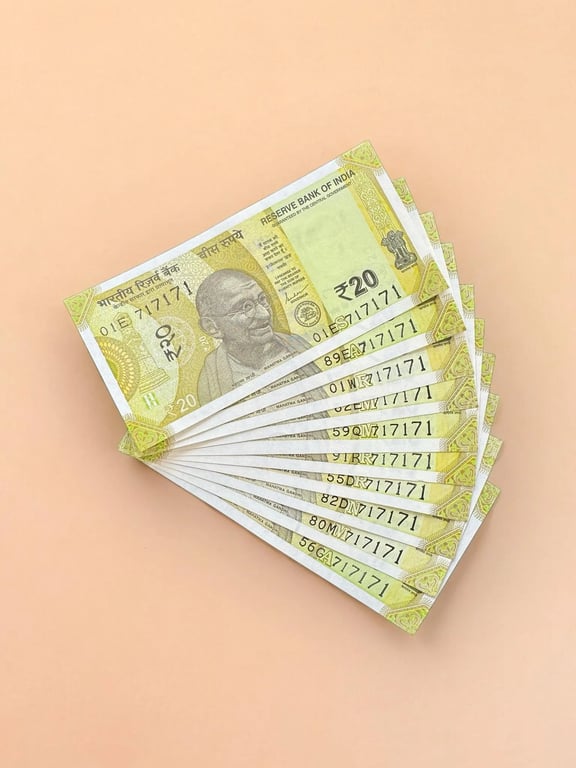 Rs 20/- India Banknote TRIPLING Number *10 Note Set Gem Unc Very Unique and Rare