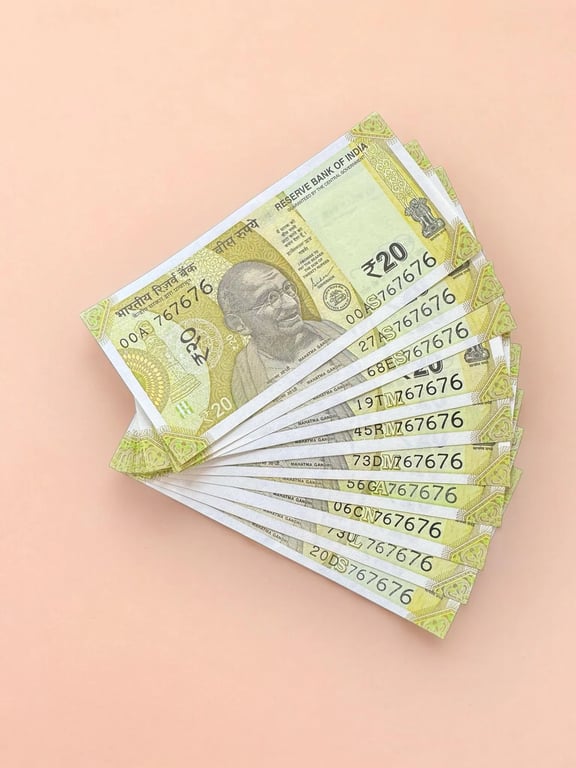 Rs 20/- India Banknote TRIPLING Number *10 Note Set Gem Unc Very Unique and Rare