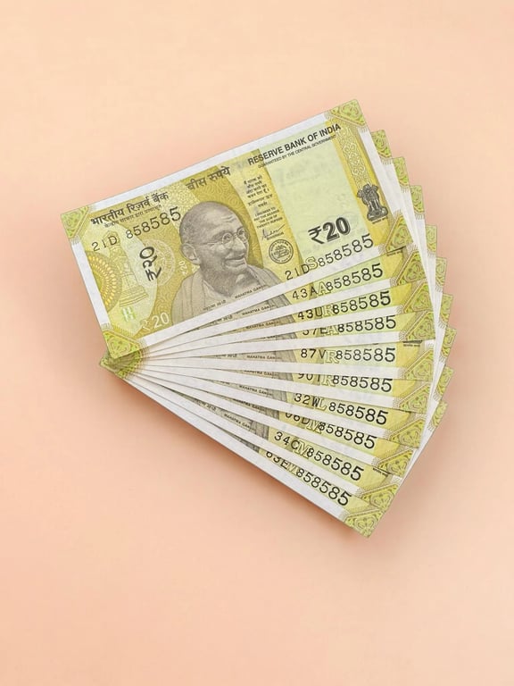 RS 20/- INDIA BANKNOTE same No 10 NOTE SEMI FANCY SET 858585 GEM UNC UNIQUE & RARE