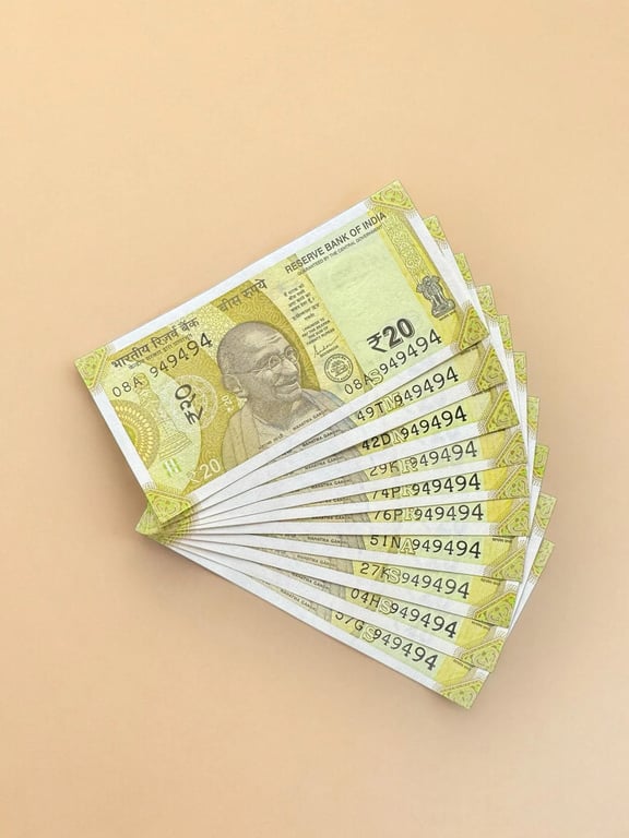 RS 20/- INDIA BANKNOTE same No 10 NOTE SEMI FANCY SET 949494 GEM UNC UNIQUE & RARE