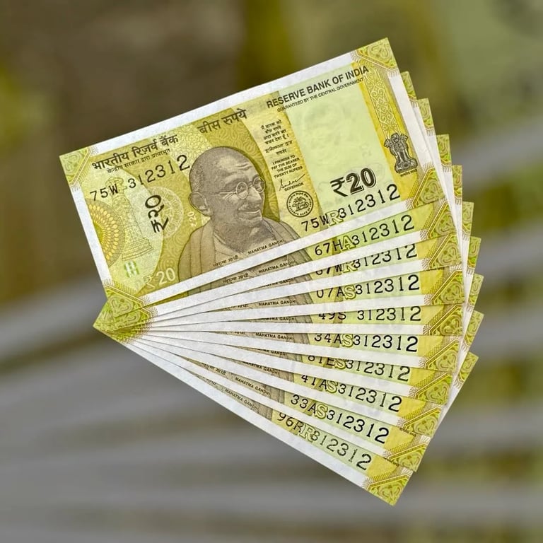 RS 20 INDIA BANKNOTES SEMI FANCY 10 NOTES SAME NUMBER SETS 312312 UNIQUE AND RARE